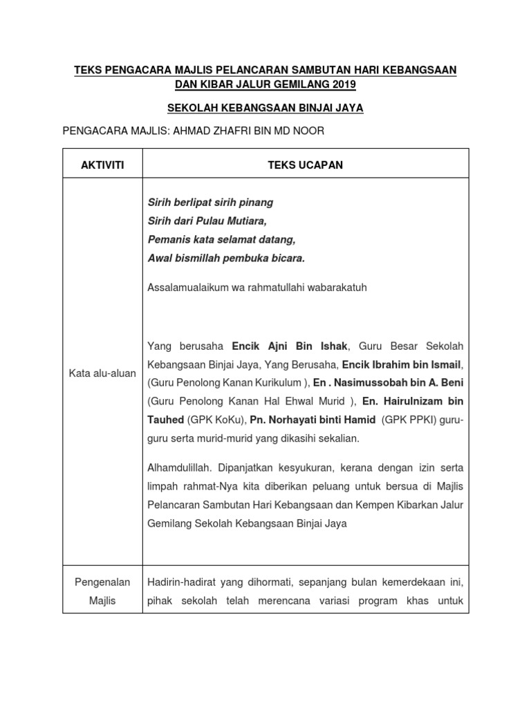 TEKS PENGACARAAN MAJLIS MAJLIS PENUTUPAN BULAN KEBANGSAAN SEKOLAH KEBANGSAAN BINJAI JAYA 2017 BIL. Teks pengacara majlis sambutan maulidur rasul smkbbs. So setiap sekolah mesti menjalankan program bagi menyemarakkan lagi sambutan di samping memupuk semangat patriotik dalam kalangan murid.