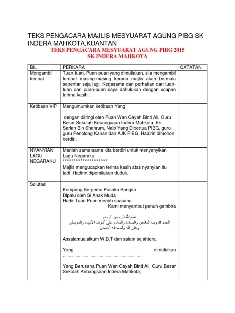 Contoh Teks Pengacara Majlis Mesyuarat Agung Pibg Sk Indera Mahkota Pdf