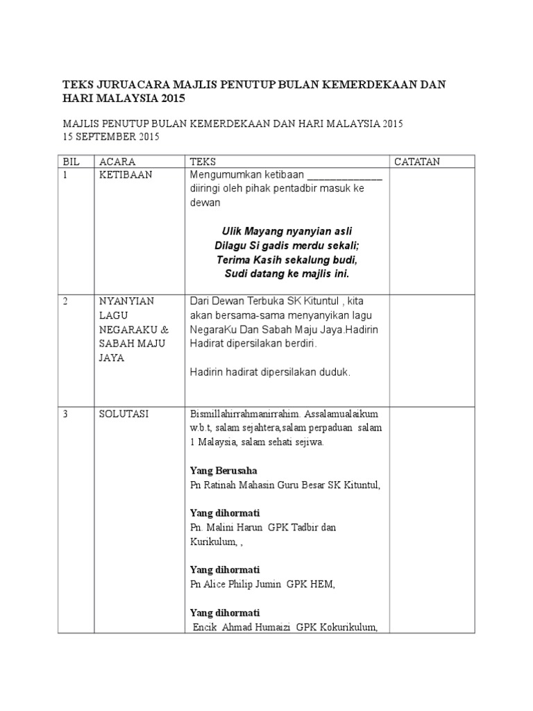 Teks Pengacara Majlis Penutupan Kemerdekaan 1 Pdf